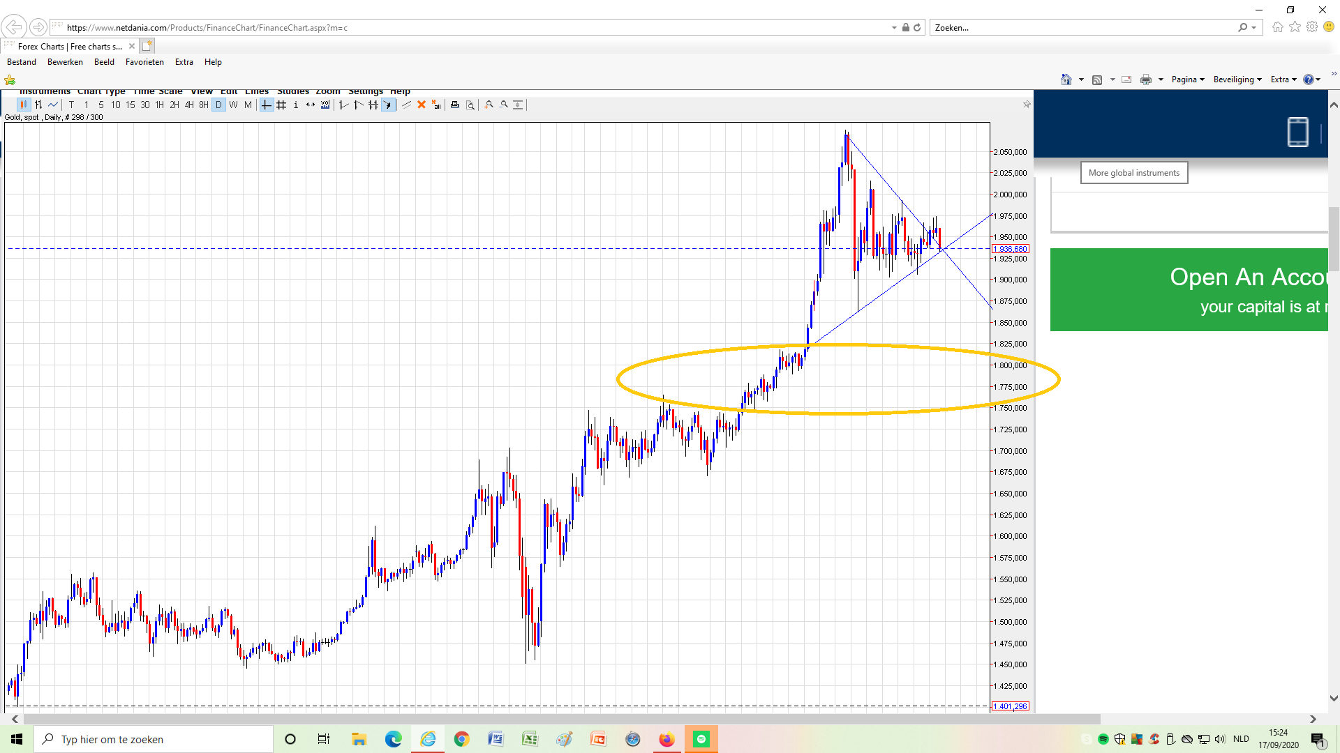 Topdriehoek op daily.The 2020 gold rush is temporarly over