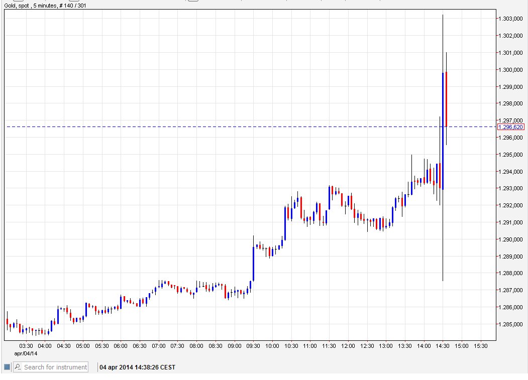 En daaronder de reactie van resp: de US-dollar-index (USDX), het valutapair EUR/USD en de reactie van GOUD op het nieuws: