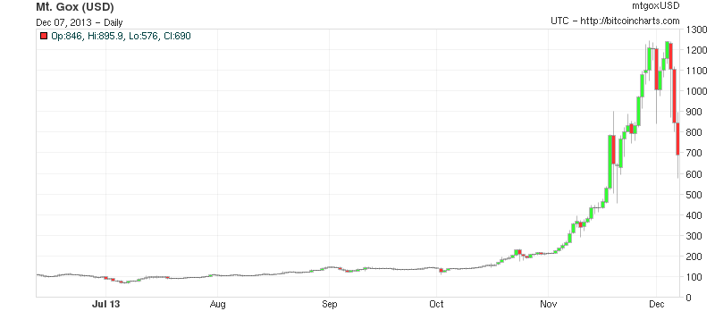 Bitcoin lijkt precies te gaan doen, waar ik HIER voor gewaarschuwd heb. Ongeacht de oorzaak (bij alles kun je wel een oorzaak vinden), doet Bitcoin wat alle beleggingsitems (commodities, aandelen, obligaties, tulpenbollen etc.) doen die dusdanig scherp omhoog gaan ..... ze eindigen in een waterval.