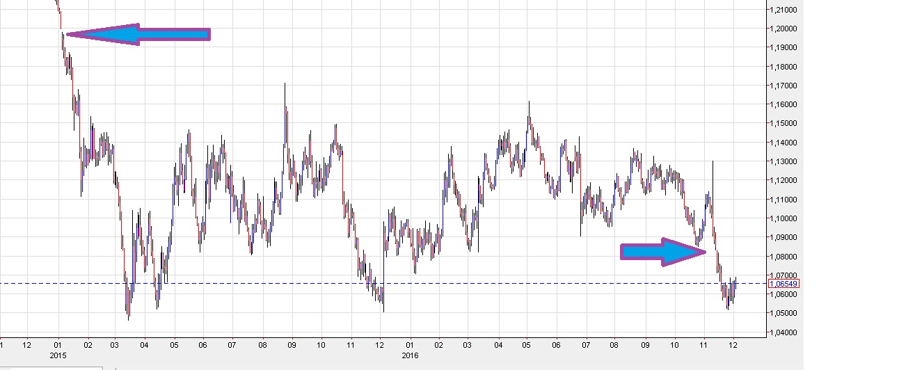 Ik gaf vroeger al aan dat de $ cyclus op zijn eind loopt en we normaliter een draai in het voordeel van de € krijgen komend jaar.