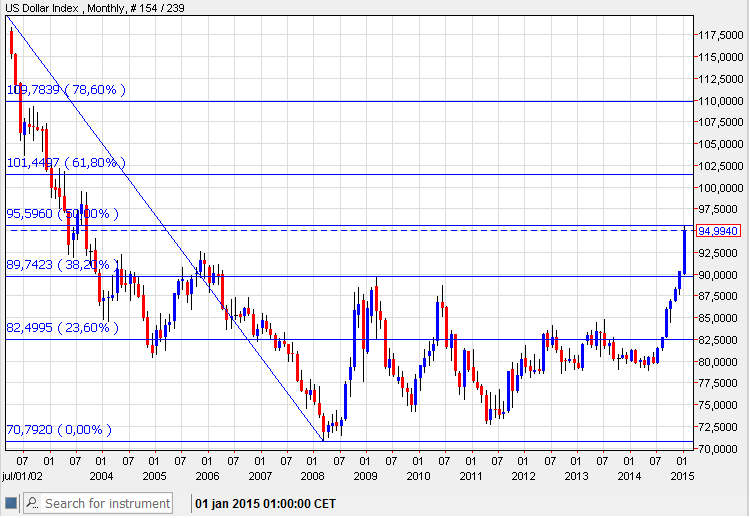 Als je naar de fibo's in euro en dollar kijkt .... zie je dat de 50% een hele hoge horde is om te nemen.