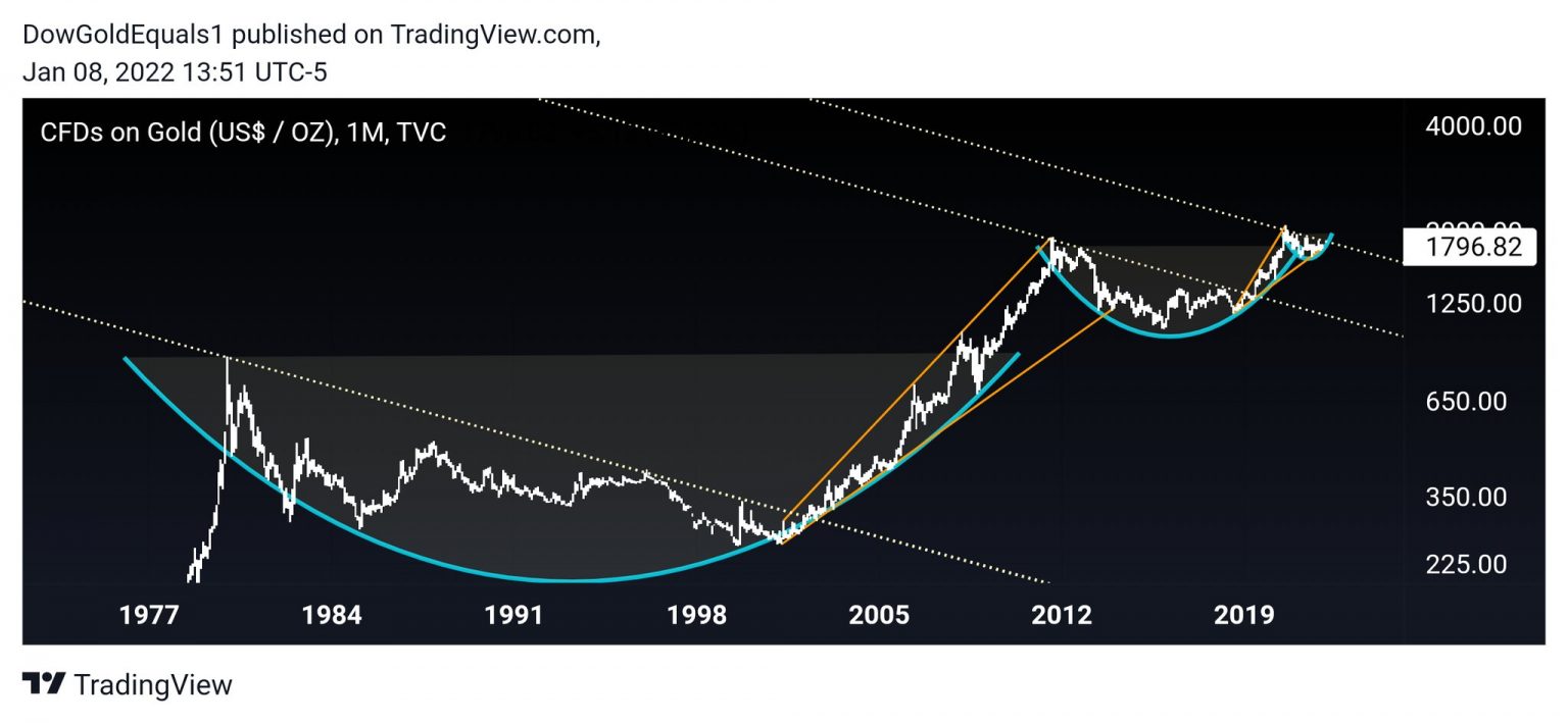 Kom je zelden tegen een goudgrafiek met "logaritmische" schaal.